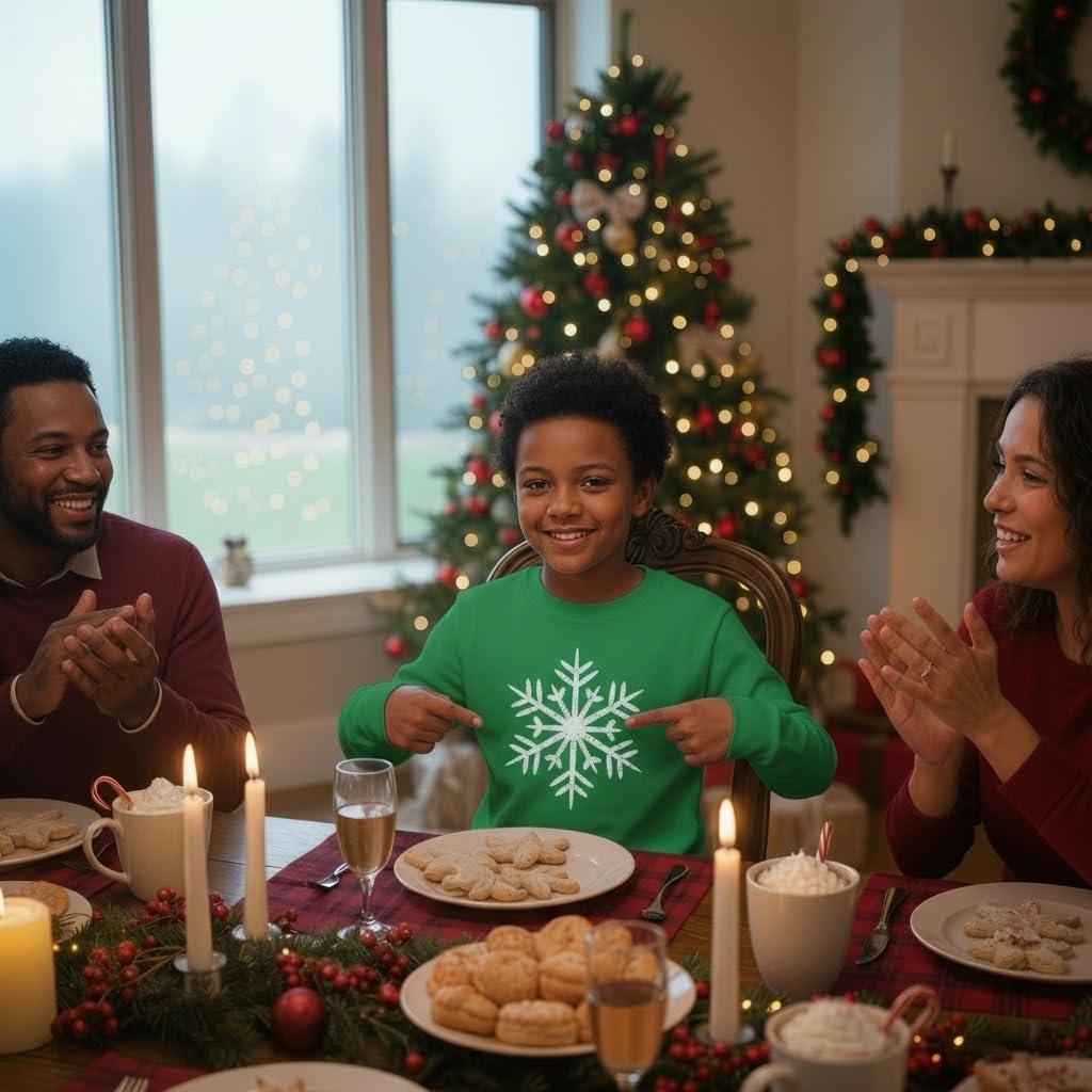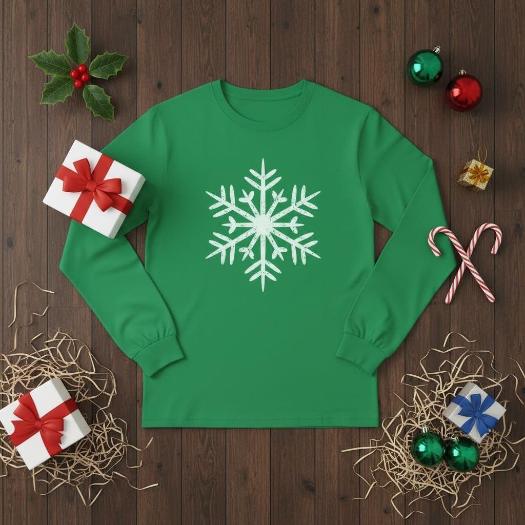 Tstars Merry Swishmas Boys Basketball Shirt – Funny Ugly Christmas Sweater Style Youth Long Sleeve Holiday Tee(Snowflake / Green)