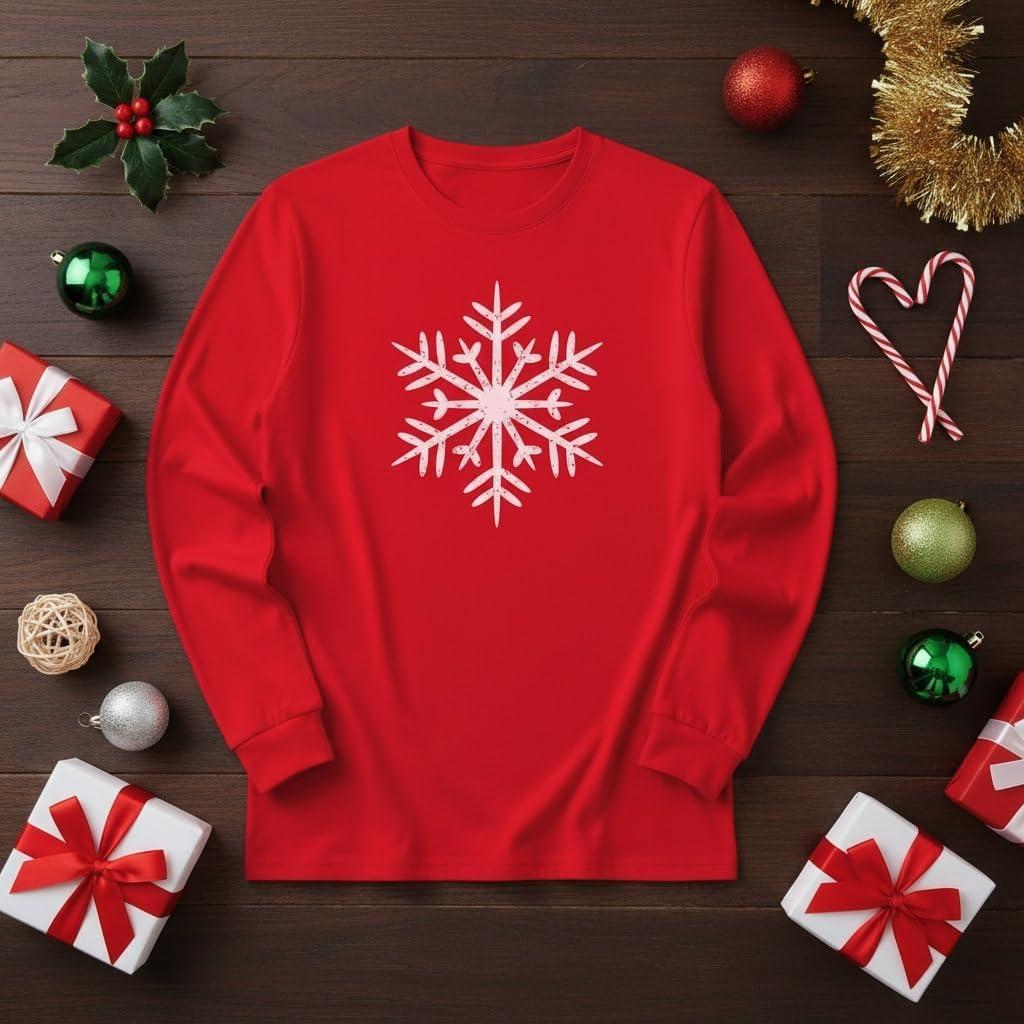 Tstars Merry Swishmas Boys Basketball Shirt – Funny Ugly Christmas Sweater Style Youth Long Sleeve Holiday Tee(Snowflake / Red)
