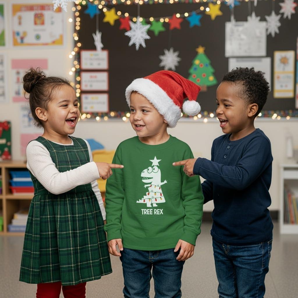 Tstars Merry Swishmas Boys Basketball Shirt – Funny Ugly Christmas Sweater Style Youth Long Sleeve Holiday Tee(Trex Tree / Green)