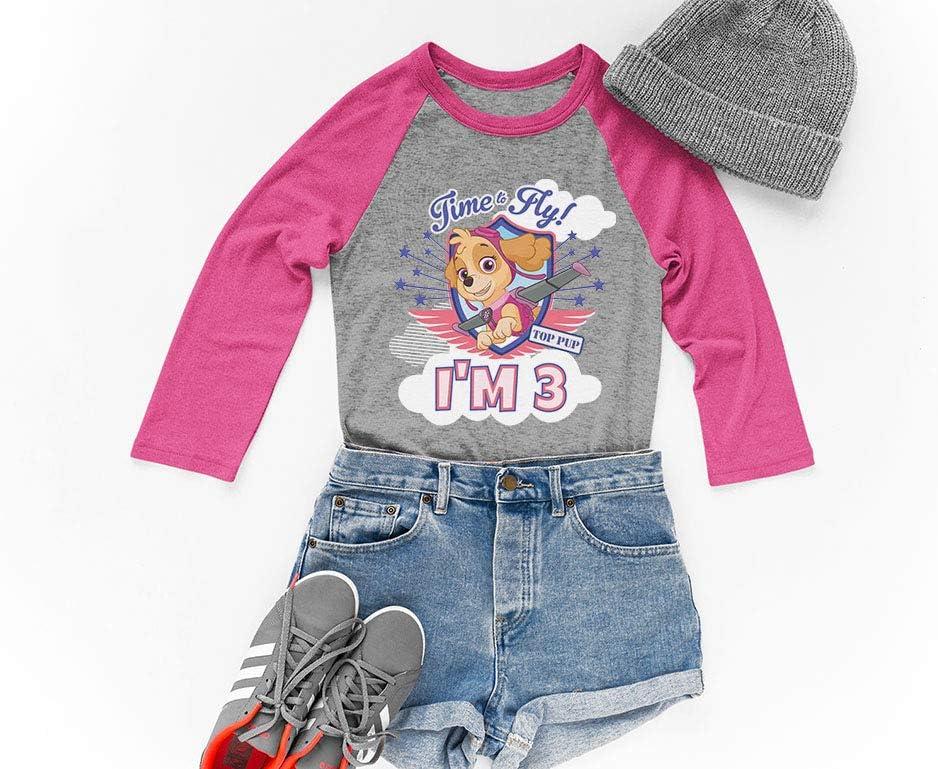 Tstars Paw Patrol Skye Girls 3rd Birthday Gift 3/4 Sleeve Baseball Jersey Toddler Shirt(Pink)