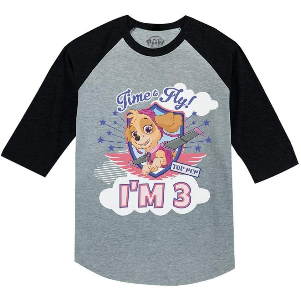 Tstars Paw Patrol Skye Girls 3rd Birthday Gift 3/4 Sleeve Baseball Jersey Toddler Shirt(Dark Gray)