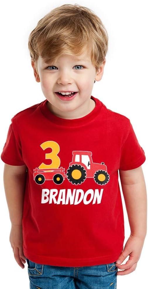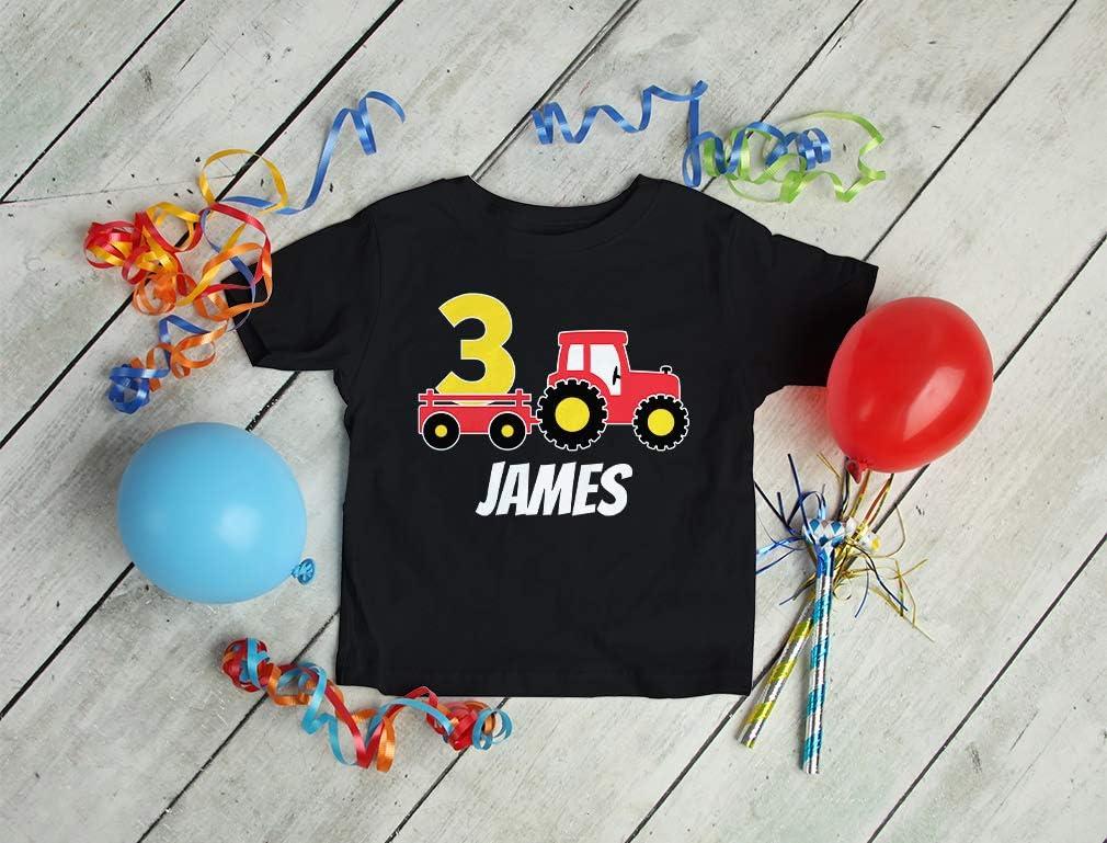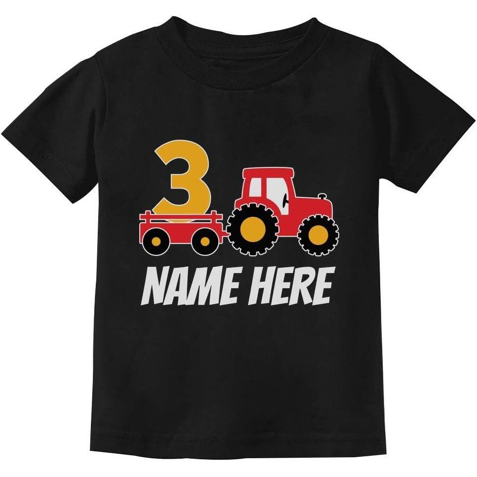 Tstars Personalized 3rd Birthday Shirt Boy Construction Tractor Toddler Kids T-Shirt(Black)