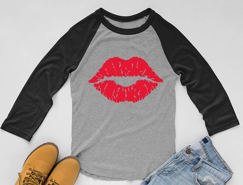 Tstars Red Lips Cute Valentine’s Day Casual Girls’ 3/4 Sleeve Baseball Jersey Toddler Shirt(Red)