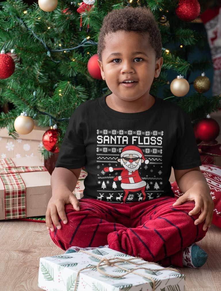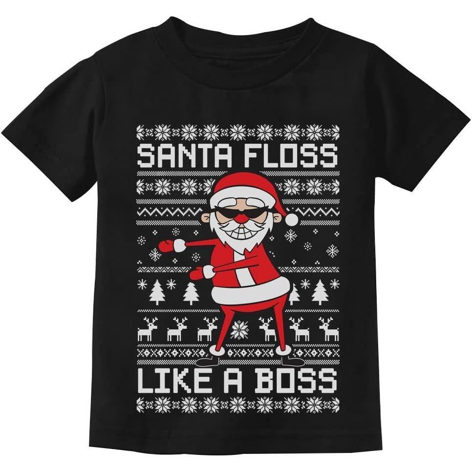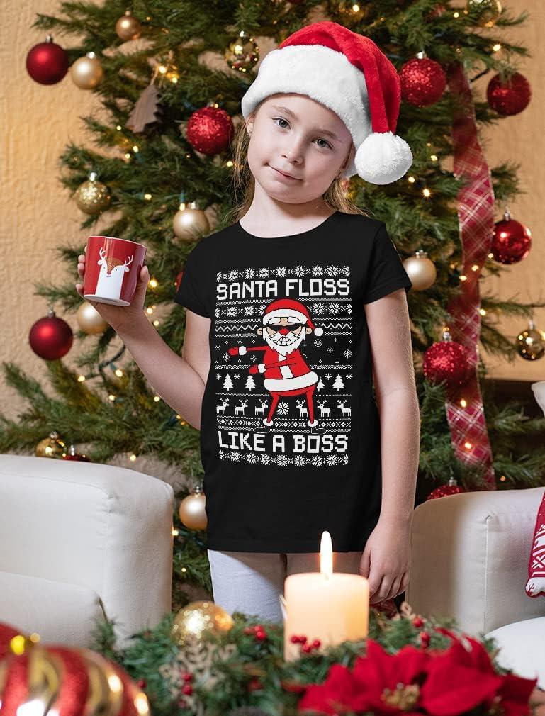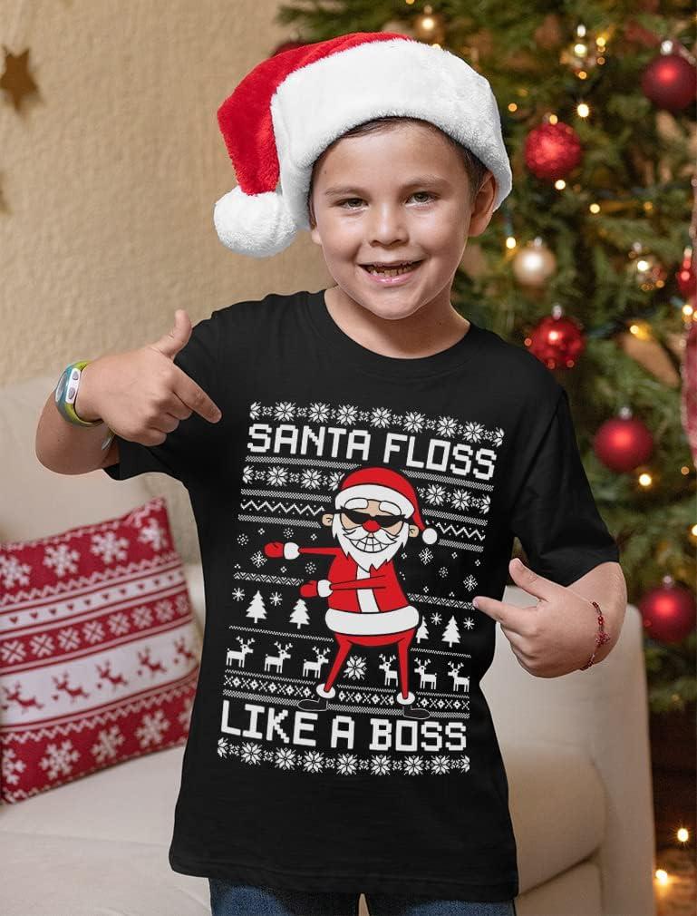 Tstars Santa Floss Dancing Kids Christmas Shirt Funny Holiday Ugly Xmas Sweater T-Shirt for Youth Boys Girls(Floss / Black)