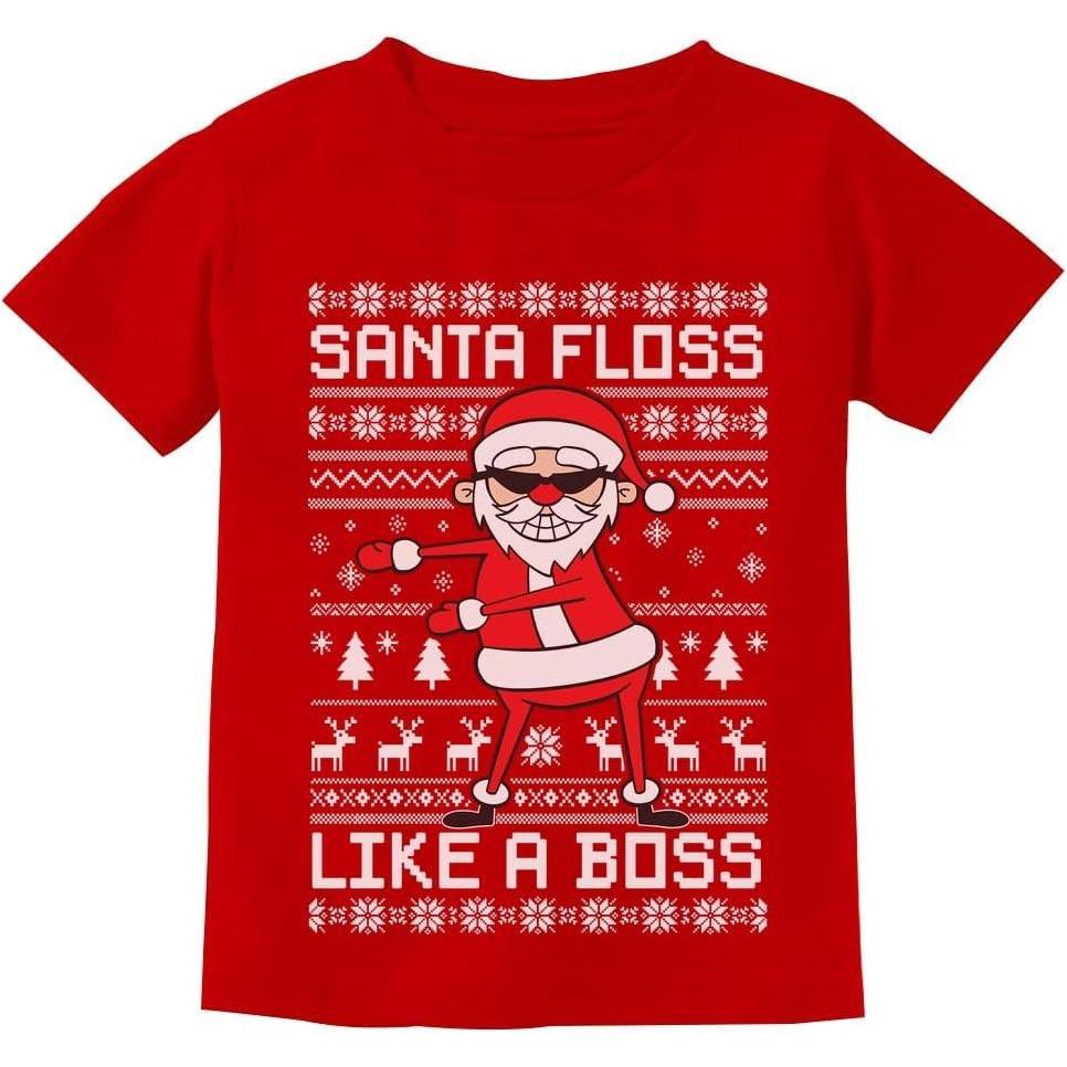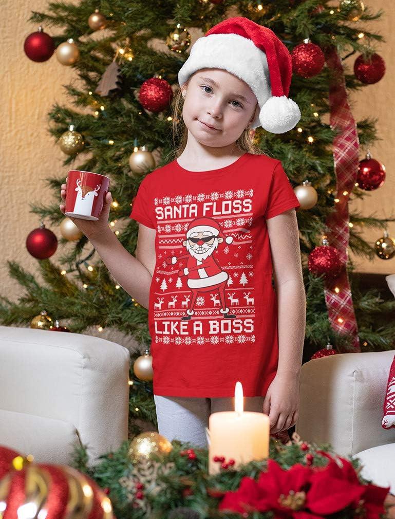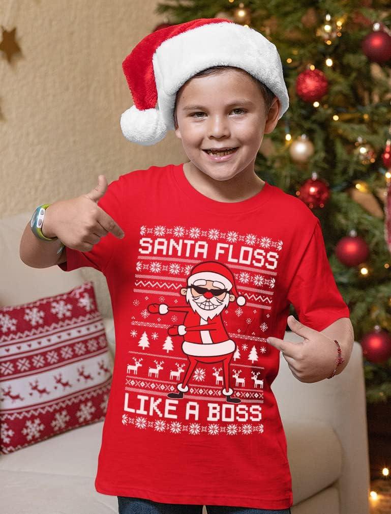 Tstars Santa Floss Dancing Kids Christmas Shirt Funny Holiday Ugly Xmas Sweater T-Shirt for Youth Boys Girls(Floss / Red)