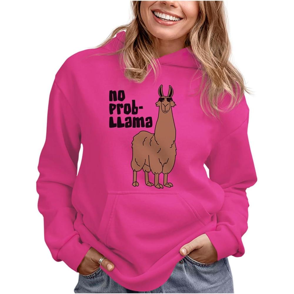 Tstars Sloth Mode Hoodie for Women and Teen Girls – Lazy Day Pullover Gift for Animal Lovers(Llama / Pink)