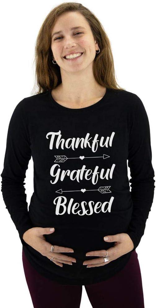 Tstars Thankful Grateful Blessed Maternity Shirt Pregnancy Maternity Long Sleeve Shirt(Black)
