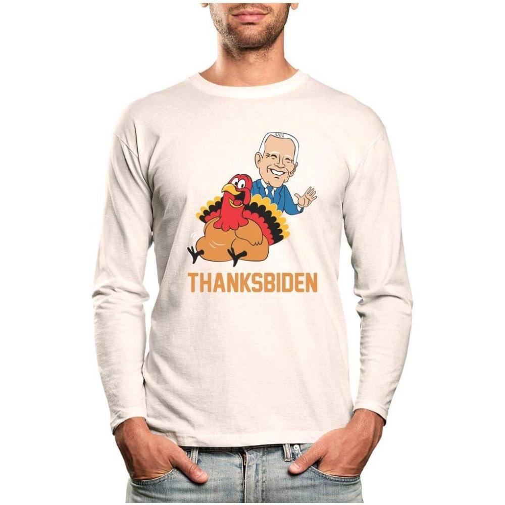 Tstars Thanksgiving Turkey Funny Joe Biden Thanksbiden Long Sleeve T-Shirt(White)