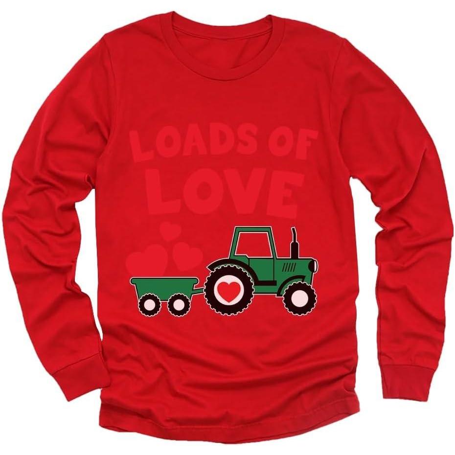 Tstars Tractor & Digger Toddler Boys Valentines Shirt Heart Dab Funny Valentine’s Day Kids Long Sleeve T-Shirt for Toddlers(Puff Tractor / Red)