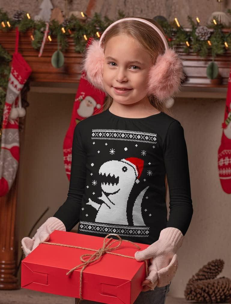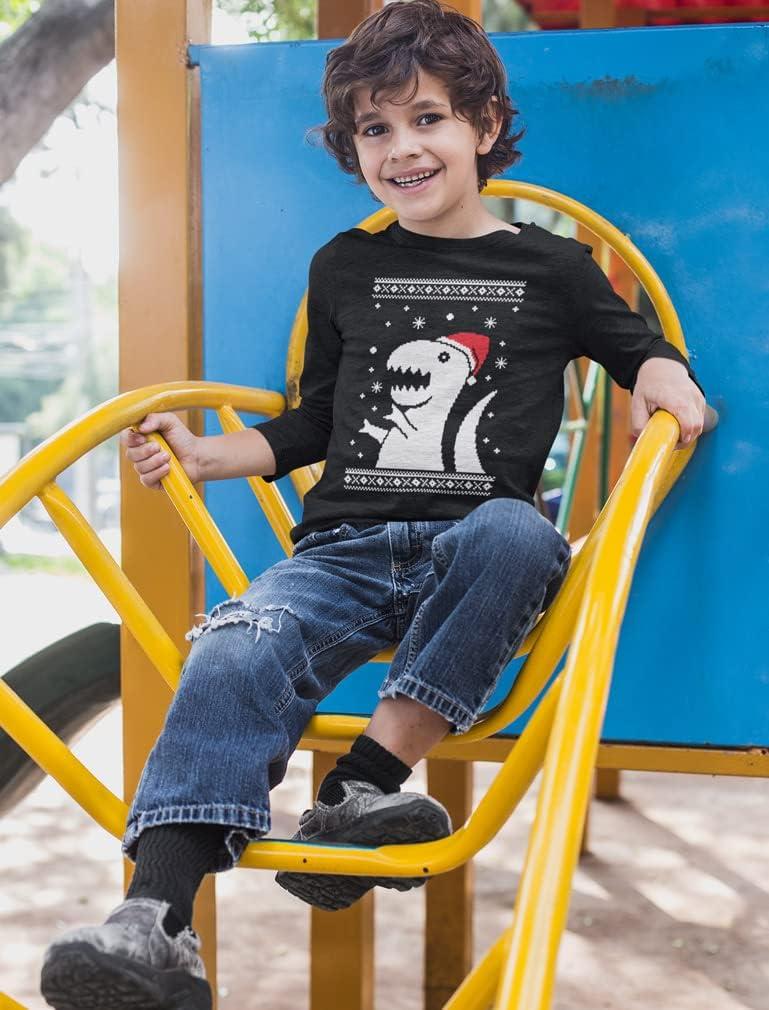 Tstars Tree Rex Kids Ugly Christmas Shirt Tacky Sweater Style Funny Xmas Holiday Long Sleeve T-Shirt for Toddler Kids(Dino / Black)