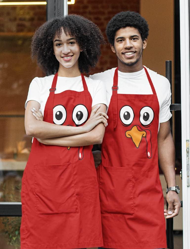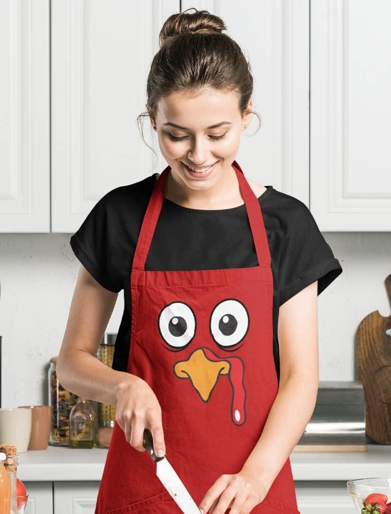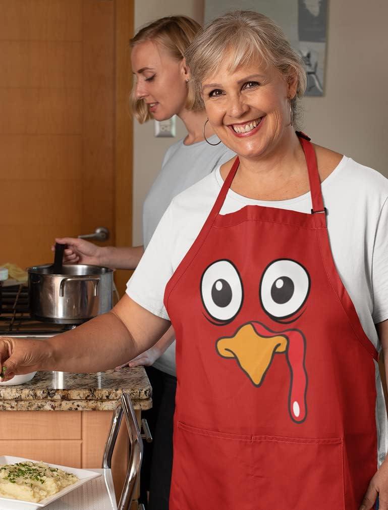 Tstars Turkey Cooking Team Apron – Funny Thanksgiving Kitchen Apron with Pockets for Men & Women Holiday Chefs(Turkey / Red)