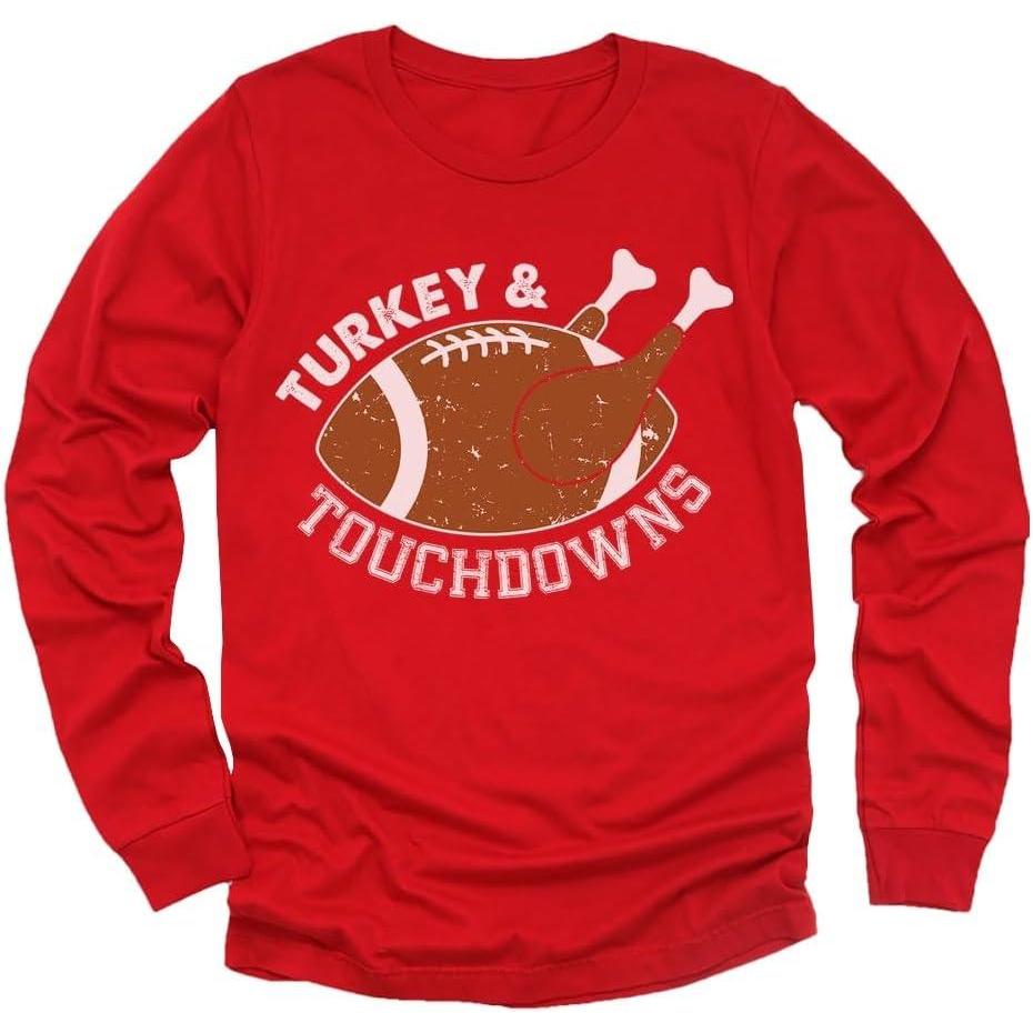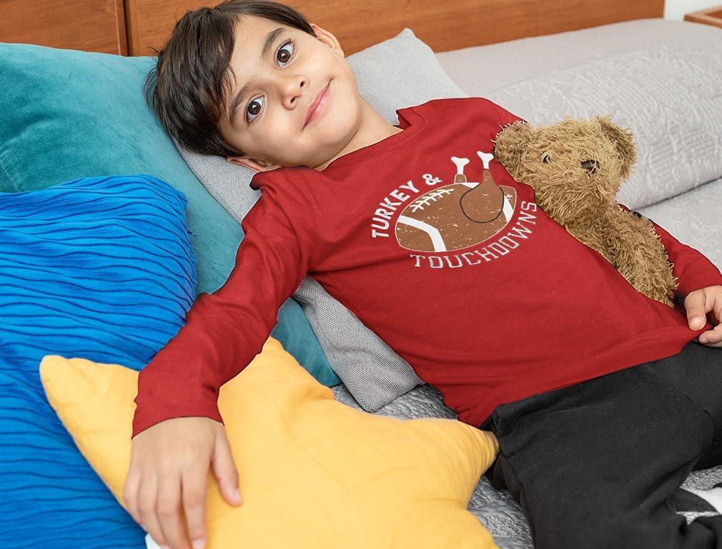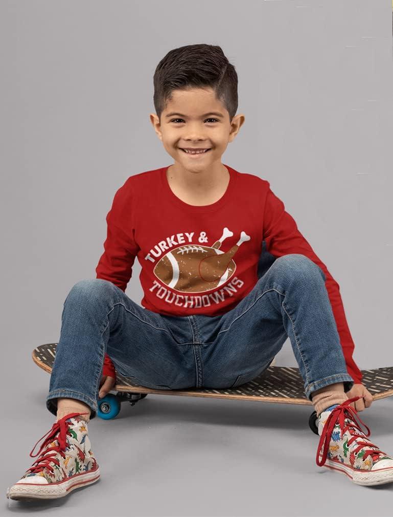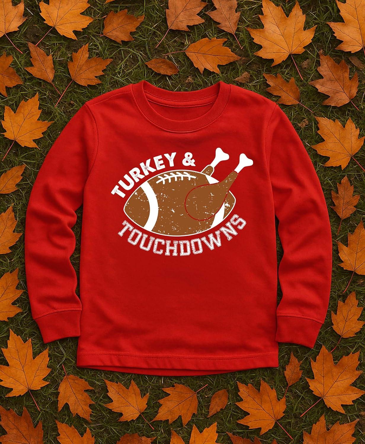 Tstars Turkey & Touchdowns Kids Shirt – Thanksgiving Long Sleeve Tee for Toddler Boys, Girls & Youth Holiday Outfit(Touchdowns / Red)