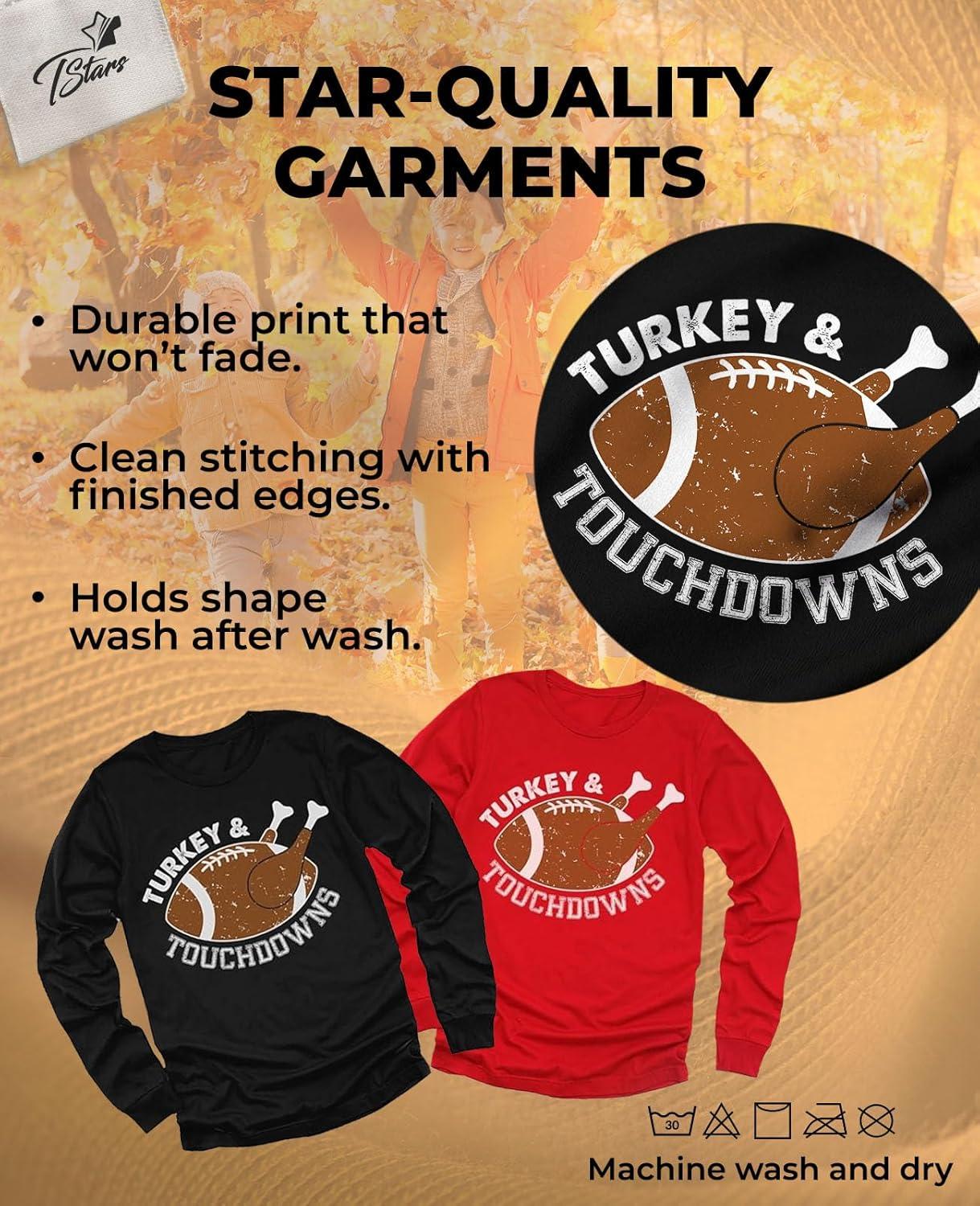 Tstars Turkey & Touchdowns Kids Shirt – Thanksgiving Long Sleeve Tee for Toddler Boys, Girls & Youth Holiday Outfit(Touchdowns / Black)