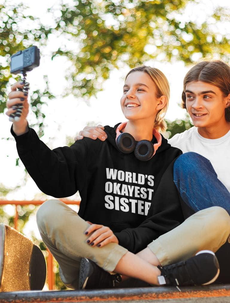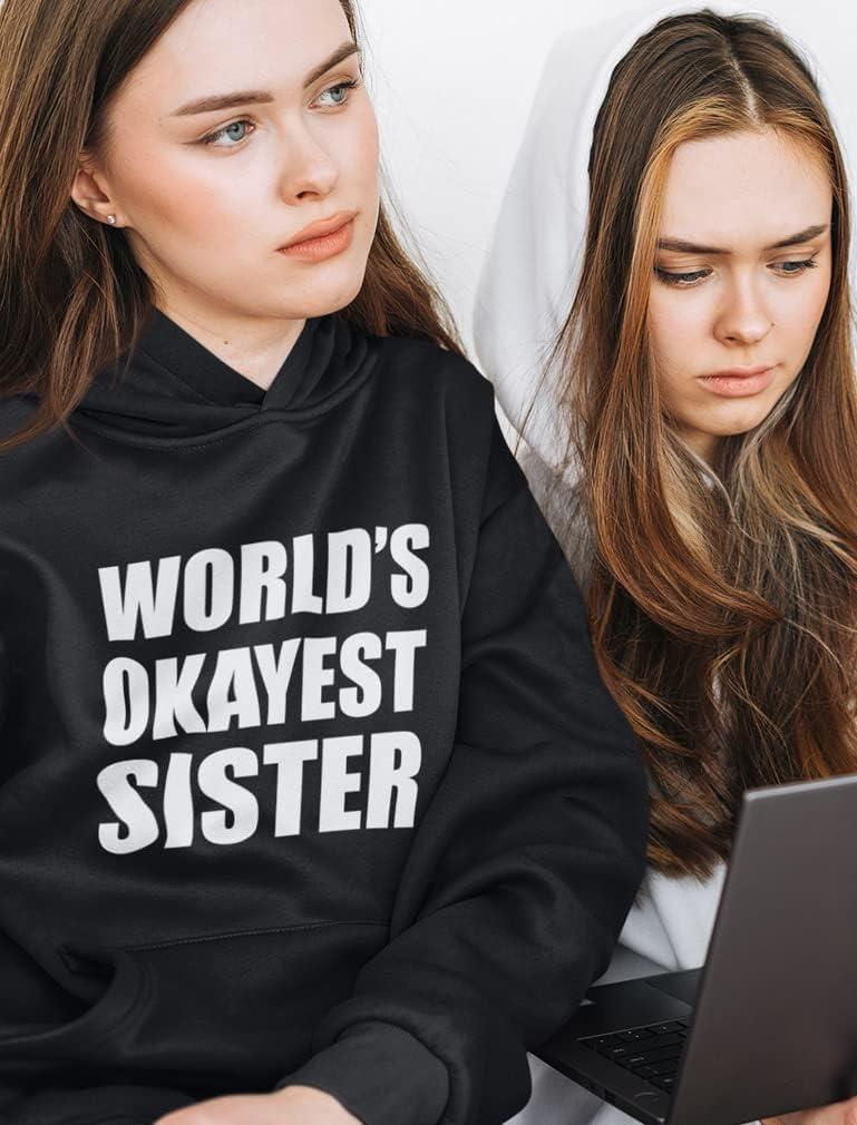 Tstars World’s Okayest Sister Hoodie – Funny Gift Sweatshirt for Teen Girls & Women for Birthday or Holiday(Black)
