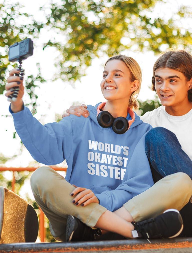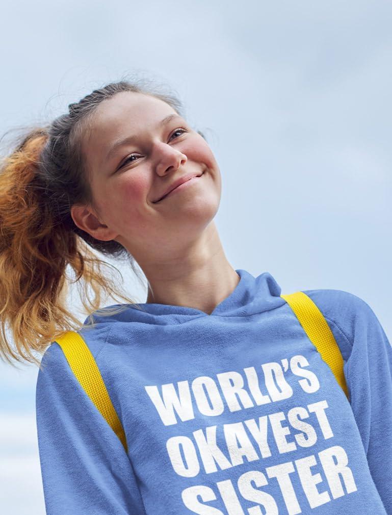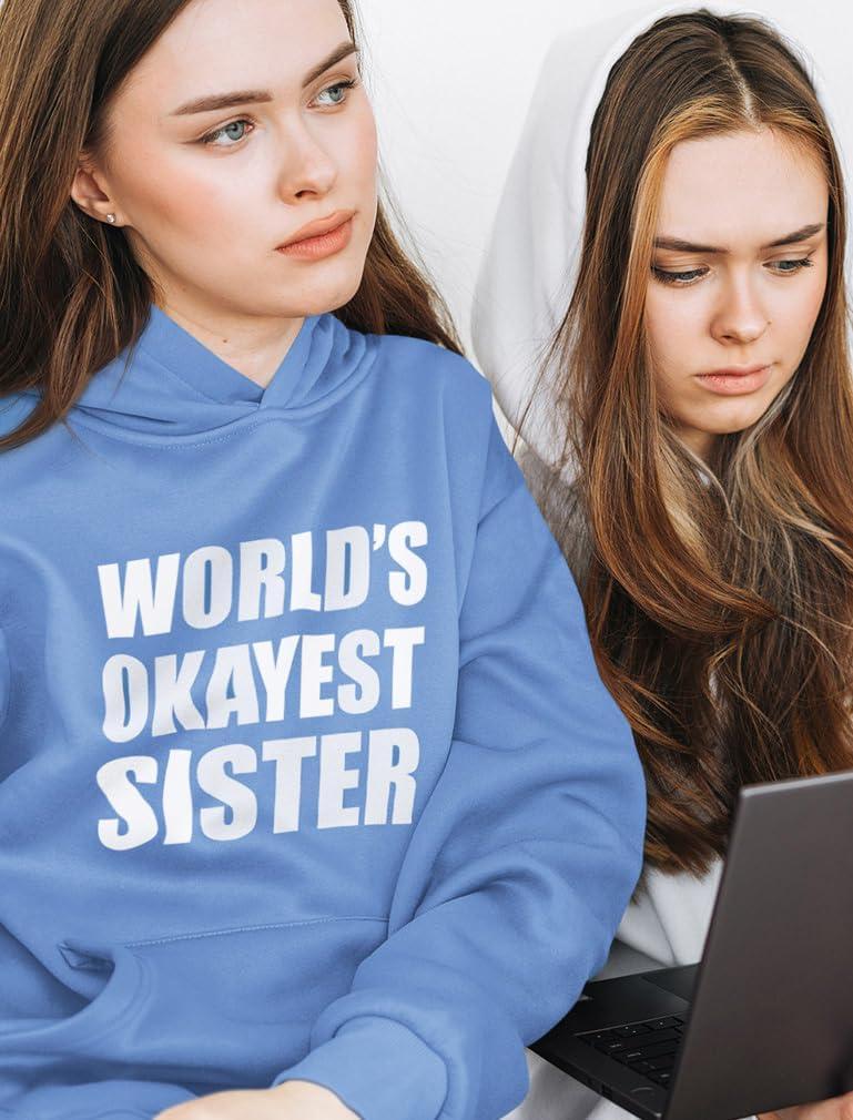 Celebrate sisterhood with a wink and a laugh in this cozy “World's Okayest Sister” hoodie. Whether she's your partner in crime or the queen of sarcasm, this playful pullover is made for women and teen girls who don't take themselves too seriously. Ideal for family movie nights, weekend hangouts, or casual outings, it brings warmth and wit into one comfy layer. Crafted from a soft cotton-blend fleece, this sweatshirt offers relaxed comfort during cold mornings or chilly classrooms. The front pouch pocket adds convenience, while the bold printed slogan gives off instant personality. It's easy to pair with jeans, leggings, or joggers–because okay is more than okay. This hoodie makes a hilarious and thoughtful gift from brothers, sisters, or friends–great choice for birthdays, holidays, or any moment you want to make her smile. Designed and printed in the USA for lasting wear and a graphic that holds up wash after wash, it's a go-to piece for anyone who wears sibling pride with a sense of humor.